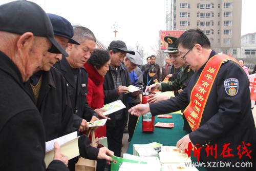3月15日,原平市開展了“3.15國(guó)際消費(fèi)者權(quán)益日”宣傳咨詢服務(wù)活動(dòng)。“冬季行動(dòng)”開展以來,該市組織消防、藥品等有關(guān)部門工作人員開展以“新消費(fèi) 我做主”為主題多種形式的宣傳咨詢服務(wù),設(shè)立了咨詢臺(tái)、打擊非法集資等展示臺(tái),接受群眾咨詢,并發(fā)放各種宣傳材料十萬余份,提高消費(fèi)者法制法規(guī)和知假辯假的能力。圖為消防工作人員向消費(fèi)者講解如何識(shí)別偽劣滅火器。(褚震 攝)