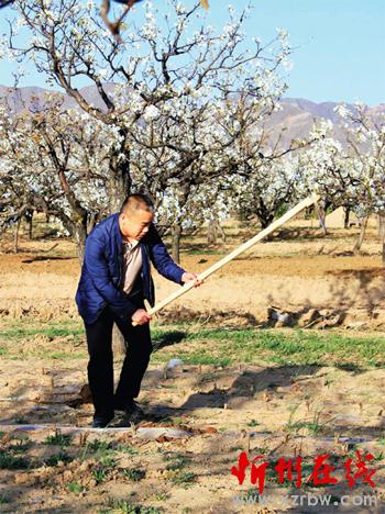 4 月16 日,游人在原平市萬畝梨園中欣賞梨花綻放美景的同時,從農(nóng)民手中“搶”過镢頭,幫助農(nóng)民刨地松土,體驗勞作辛苦,分享勞動之美。城鄉(xiāng)一體化建設,新農(nóng)村景觀吸引了城市市民,節(jié)假日、周末城里人紛紛走出“水泥森林”,深入到農(nóng)村,不僅享受春光踏青賞花的樂趣,而且在鄉(xiāng)村游中,與廣大農(nóng)民一起勞動,同吃同住,體會農(nóng)耕文化之韻。(吉建平 攝)
