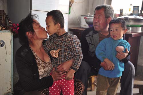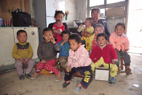 原來,張滿亮的妻子在附近的礦山企業(yè)打工當廚師,在回家的途中遇到一個被父母遺棄路邊的殘疾棄嬰,在那里哇哇大哭,她左思右想不忍心,就將殘疾棄嬰抱回家撫養(yǎng),丈夫張滿亮不僅不嫌棄,還搭手幫忙。從此開始,得知張滿亮夫婦是樂做善事熱心人的縣民政局和周邊村民,就接連不斷地將殘疾棄嬰給張滿亮夫婦送來,他倆二話不說全部接納收養(yǎng),6年來一共接納了9名。隨著殘疾兒童的增多,自家房屋缺少沒法養(yǎng),村集體就將舊學校的幾間房屋騰出來讓他倆占用?,F(xiàn)在9名棄嬰,最大的五六歲,最小的才五個月,均有殘疾,有的兔嘴、缺耳、缺胳膊、雙目失明,有的患肌肉萎縮、肺腫大、心臟病、疝氣。張滿亮夫婦以父母般的愛心撫養(yǎng)照料這些孩子,還給起了很好聽的名字:張?zhí)炖住執(zhí)煊?、張?zhí)祜L、張?zhí)煸?、張?zhí)觳拧執(zhí)鞂?、張?zhí)旎?、張麗花、張彩花。他倆與二兒媳董艷紅精心照料著殘疾兒童的一日三餐和生活起居,穿衣喂飯,潑奶哺乳,擦屎倒尿,大哭小叫,不厭不煩,起早貪黑,周而復始,以人間大愛撫育著這些殘疾兒童健康的成長。