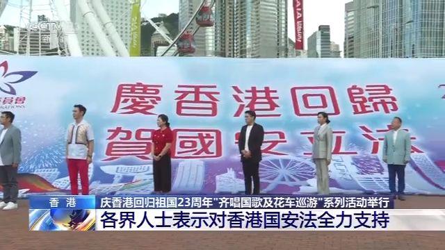 昨天(7月1日)上午,香港各界慶典委員會為慶祝香港回歸祖國23周年,舉辦“齊唱國歌及花車巡游”等系列活動,各界人士表達(dá)了對香港回歸祖國23周年的喜悅之情,以及對香港國安法的全力支持。