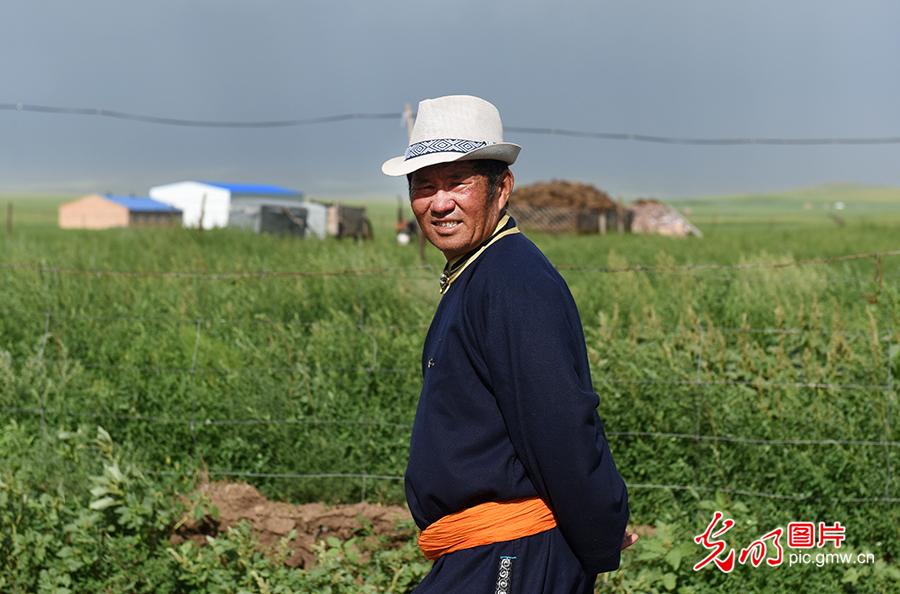 光明網(wǎng)訊(記者 趙艷艷 潘迪 李剛)提起其日麥拉圖,在陳巴爾虎旗的牧民中可謂無人不知、無人不曉。60年前,其日麥拉圖作為一名上海孤兒被內(nèi)蒙古自治區(qū)接到草原撫養(yǎng);60年來,其日麥拉圖加入了黨組織,于1995年擔任陳巴爾虎旗東烏珠爾蘇木海拉圖嘎查書記,一干就是八年。圖為2020年8月2日,其日麥拉圖在自家牧場。(潘迪攝/光明圖片)