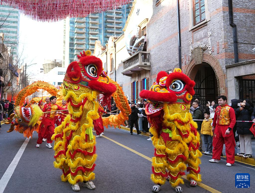 2月8日在張園拍攝的舞獅表演。(新華社記者 劉穎 攝)