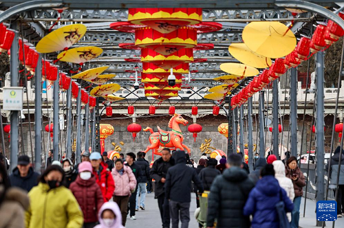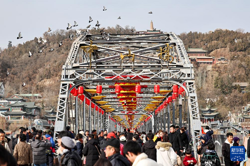 2月9日,人們在蘭州市城關區(qū)中山橋上游覽。(新華社發(fā) 侯崇慧 攝)