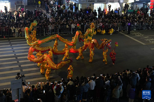 3月3日,浙江省衢州市舉辦“龍騰古城·福滿衢州”舞龍展演活動,衢州市江山南塢龍在活動上巡游展演。(新華社記者 黃宗治 攝)