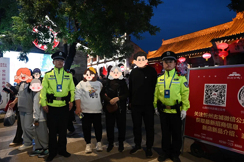 “國慶”“中秋”兩節(jié)期間,來自五湖四海的游客慕名而來,賞忻州古城美景、品秀容文化。在排隊擁擠的小吃街,在威嚴聳立的城墻上,在熙熙攘攘的酒吧街,忻府公安民輔警犧牲休息時間,始終堅守崗位,用快速響應(yīng)與貼心服務(wù),全力守護游客出行平安,用擔當和奉獻織牢古城平安防護網(wǎng)。