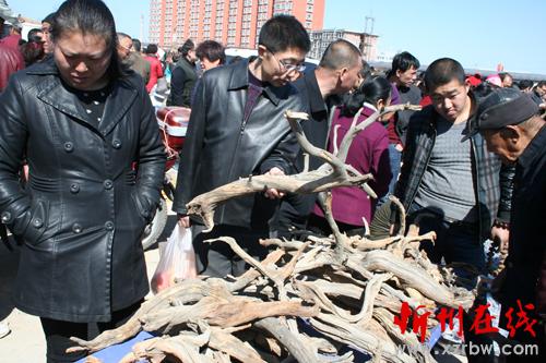 3月13日,原平市集貿(mào)市場(chǎng)上農(nóng)民正在賣(mài)形態(tài)各異廢棄的柏樹(shù)木根枝 他們變廢為寶促增收,很受市民喜愛(ài)收買(mǎi)。該市,采取多措并舉積極引導(dǎo)農(nóng)民增收致富,加快奔小康步伐。(趙月仁 攝)
