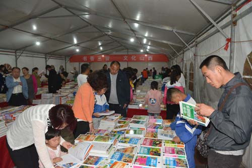 近日,定襄縣金鼎廣場的圖書展銷受到廣大群眾的熱烈歡迎,主辦方專門設(shè)置了閱覽區(qū),群眾不僅能享受圖書折扣,還能免費(fèi)閱覽所有圖書。此次活動(dòng)是定襄縣“我的中國夢,書香飄萬家”全民閱讀推廣主題活動(dòng)之一,為期15天。圖為5月12日,群眾在書展上購書閱讀。(劉小苗)