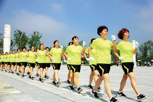 7 月17 日,“康樂健步走”團隊在忻州城區(qū)云中河景區(qū)開展“我運動,我健走,我健康,我快樂,我幸?!鼻私〔阶呋顒?,慶祝該團隊成立兩周年?!翱禈方〔阶摺眻F隊以“健康快樂”為口號,目前在全市已發(fā)展到50 余支健走隊伍。(吉建平 攝)