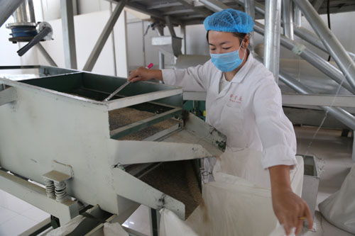 7月22日,靜樂(lè)縣華青藜麥產(chǎn)品開(kāi)發(fā)有限公司的員工在篩選藜麥產(chǎn)品。這個(gè)綜合性農(nóng)業(yè)開(kāi)發(fā)企業(yè),堅(jiān)持走“企業(yè)管理+種植基地”的運(yùn)作模式,積極推動(dòng)藜麥、小雜糧等規(guī)?;N植經(jīng)營(yíng),成為當(dāng)?shù)貛ьI(lǐng)農(nóng)民致富的龍頭企業(yè)。(閆曉梅 攝)