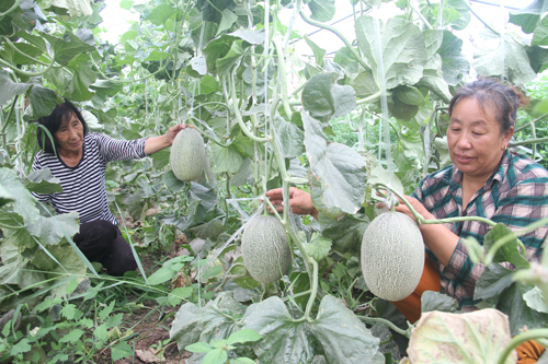 7月28日,原平市雙惠現(xiàn)代農(nóng)業(yè)示范園區(qū)的哈密瓜種植基地,鋼架溫室大棚里,藤蔓在架子上攀援,繁茂的枝葉間,一個個圓滾滾的小哈密瓜已經(jīng)探出了腦袋。近年來,該園區(qū)積極探索農(nóng)民工多元增收途徑,調(diào)整農(nóng)業(yè)種植結(jié)構(gòu)。這次引進新疆哈密瓜種植取得成功,為我市發(fā)展高效農(nóng)業(yè)起到了示范作用。圖為工作人員正在查看哈密瓜長勢,預(yù)計八月初可收摘上市。(褚震 攝)