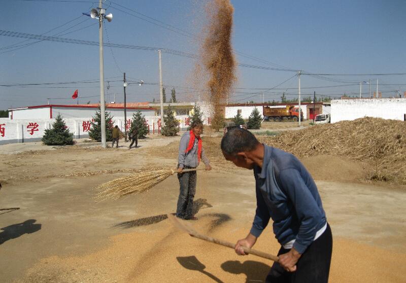 “糜米撈飯豆腐菜,皇帝老爺也喜愛?!边B日來,河曲縣山區(qū)農民抓緊收割做“糜米撈飯”的糜子,在村頭場面上“熬晌”碾場、揚場,到處彌散著糜米的芳香。當一堆堆金燦燦的糜米呈現在場面,老鄉(xiāng)們醉了樂了。圖為柏鹿泉村農民打場的情景。(賈金理)