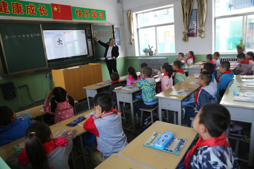 近日,在靜樂縣愛樂希望小學(xué),學(xué)生正通過交互式多媒體教學(xué)方法上課。老師高興地說:“有了多媒體真方便,以前講一個(gè)例題要花幾分鐘抄寫在黑板上,現(xiàn)在只需幾秒鐘就顯示在頻幕上,既節(jié)省時(shí)間又提高課堂效率。”近年來,該縣加大教育投資力度,改善辦學(xué)條件,為學(xué)生上課提供便利。(閆曉梅 攝)