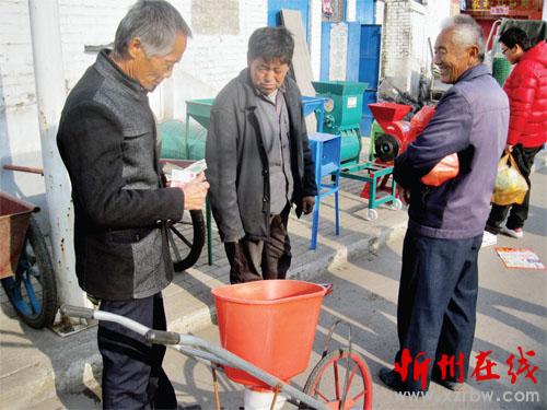 十一月十七日是河曲縣巡鎮(zhèn)趕集日,十里八鄉(xiāng)的農(nóng)民紛紛趕來選購小型農(nóng)機具。近年來,該縣農(nóng)民在農(nóng)機具購置補貼政策鼓勵下,購買農(nóng)機熱情高漲,極大地提高了農(nóng)業(yè)生產(chǎn)效率。圖為農(nóng)民正在購買播種機。(賈金理 攝)