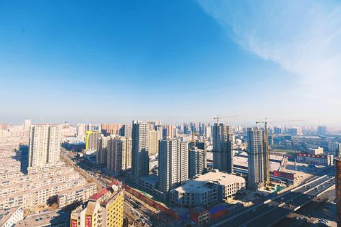 1月9日,太原市空氣AQI指數(shù)81,市民迎來了一個干凈透亮的二級天。圖為蔚藍天空下省城南內(nèi)環(huán)西街附近景色。