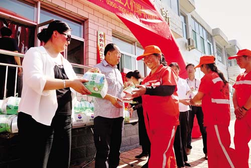 5月30日是中國的傳統(tǒng)節(jié)日——端午節(jié),包粽子、吃粽子是端午的傳統(tǒng)習(xí)俗。在過節(jié)期間,城區(qū)環(huán)衛(wèi)工人仍然堅守在清掃一線,為扮靚忻州城努力著,工作使他們沒有充足的時間來買米買棗包粽子。5月27日端午節(jié)前夕,愛心企業(yè)忻州市華祥商貿(mào)茅臺專賣店,心系環(huán)衛(wèi)工,在忻州市環(huán)境衛(wèi)生管理處三所門前,為130多名一線環(huán)衛(wèi)工人送上了粽子小禮盒,感謝他們對城區(qū)環(huán)境作出的貢獻(xiàn),也希望他們能在端午節(jié)吃到香甜的粽子。