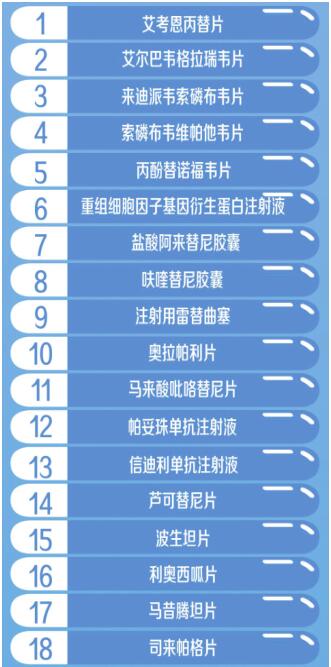 國(guó)家醫(yī)保局醫(yī)藥服務(wù)管理司司長(zhǎng)熊先軍介紹,此次談判成功的藥品多為近年來(lái)新上市且具有較高臨床價(jià)值的藥品,涉及癌癥、罕見(jiàn)病、風(fēng)濕免疫、心腦血管、消化等10余個(gè)臨床治療領(lǐng)域。重點(diǎn)領(lǐng)域的5個(gè)基本藥物全部談判成功,22個(gè)抗癌藥、7個(gè)罕見(jiàn)病用藥、14個(gè)慢性?。ê悄虿?、乙肝、風(fēng)濕性關(guān)節(jié)炎等)用藥、4個(gè)兒童用藥談判成功,進(jìn)一步優(yōu)化了目錄結(jié)構(gòu)。