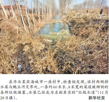 這條名為新溝的小河穿村而過,許多村民依河而居。多位村民反映:“河水臭氣熏天。今年受干旱影響,水流緩慢,污染比往年更加嚴(yán)重。有的下水道直連河涌,糞水都沖了出來?!毖刂聹虾幼呷?,檢查組看到,由于水位較低,大量直排入河的下水管道就裸露在外。 在華北某濱海城市一座村中,檢查組發(fā)現(xiàn),該村西側(cè)排水渠與鮑丘河交界處,一條約60米長、8米寬的渠道被傾倒的各種垃圾堵塞,水渠已經(jīng)成為名副其實(shí)的“垃圾水道”。而在該村東北水渠河長公示牌附近就有生活污水直接排入,水面漂浮綠色青苔、白色泡沫,散發(fā)刺鼻惡臭。 記者梳理發(fā)現(xiàn),在一些臨近城區(qū)、人口密集的村鎮(zhèn),河涌水體黑臭情況更為突出。檢查組發(fā)現(xiàn),位于珠三角的一座村莊人口密集,村內(nèi)兩條河涌常年被建筑垃圾、生活垃圾擠占,加上當(dāng)?shù)匚唇ㄔO(shè)污水收集設(shè)施,附近居民生活污水常年直排河涌,造成嚴(yán)重污染。 而在離城區(qū)稍遠(yuǎn)的農(nóng)村,部分不法村鎮(zhèn)小作坊等污水違規(guī)排放時(shí)有發(fā)生。檢查組發(fā)現(xiàn),長江中游某省一座沿江城市所轄村莊里,一磷礦尾礦庫的磷渣常年堆積,一下雨,就形成一條白色的“污水溝”。檢查組在華北某特大城市北部遠(yuǎn)郊一村中實(shí)地檢查時(shí)發(fā)現(xiàn),該村“黑洗衣作坊”違規(guī)偷排污水,污染環(huán)境。 新舊問題交織,制約農(nóng)村污水治理成效 記者跟隨檢查組走訪發(fā)現(xiàn),城鎮(zhèn)近郊農(nóng)村、偏遠(yuǎn)農(nóng)村面臨的污水治理難題不一,但歸根結(jié)底在于污水未得到有效收集。 ——廁改后,廁排污水何處去成新問題。水沖式衛(wèi)生廁所建成后,污水往哪排困擾村民。華北一濱海城市某下轄區(qū)目前已完成農(nóng)村戶廁改造33000座,但有22座污水中心處理站還在進(jìn)行施工前期準(zhǔn)備。記者隨檢查組走訪該區(qū)多座村莊發(fā)現(xiàn),許多農(nóng)戶家已建有化糞池,但對于如何處理化糞池污水,大部分村民表示仍跟以往一樣,找專人抽取?!凹S污也沒合適的地方處理,只好往遠(yuǎn)離村莊的農(nóng)田和溝渠里倒。”