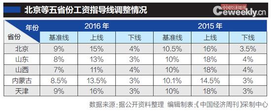 文章導(dǎo)讀: 企業(yè)工資指導(dǎo)線(下稱“工資指導(dǎo)線”)從1997年出臺(tái),至今已20年。按照慣例,各省份在每年上半年就會(huì)發(fā)布。不過(guò),截至7月20日,《中國(guó)經(jīng)濟(jì)周刊》 記者發(fā)現(xiàn),僅有天津、北京、山東、山西、內(nèi)蒙古等五省份發(fā)布了2016年工資指導(dǎo)線,并且多是下調(diào)基準(zhǔn)線。