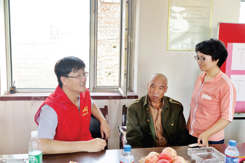 愛(ài)心人士代表朱玉堂與宿香玲及其父交談