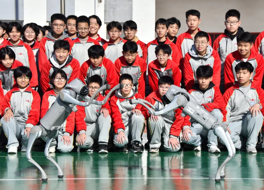 2024年12月6日,河北省邯鄲市永年區(qū)實(shí)驗(yàn)中學(xué),學(xué)生正在觀看機(jī)器狗表演。胡高雷 攝