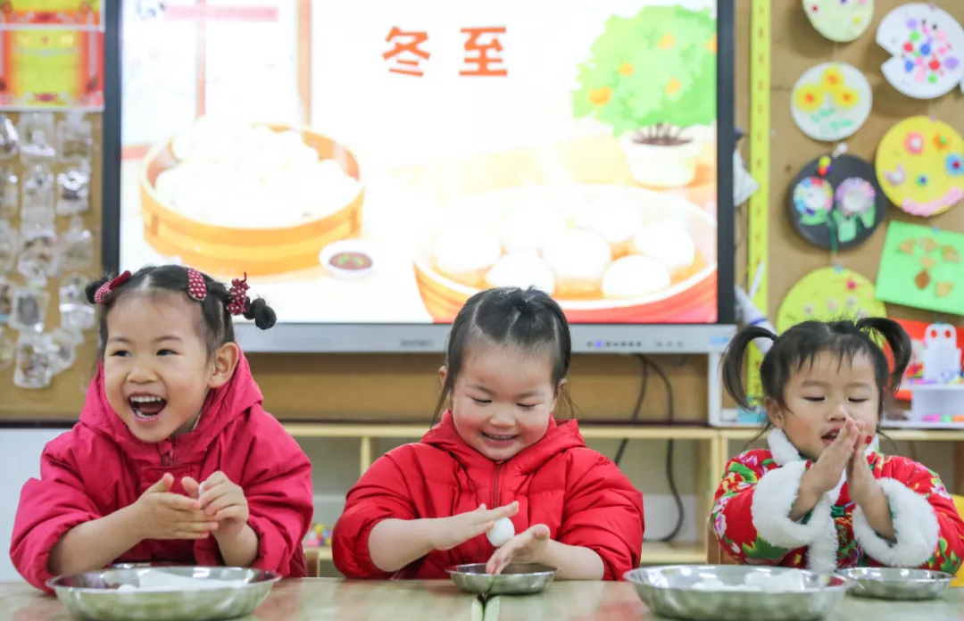 2024年12月20日,貴州省貴陽市開陽縣第二幼兒園的小朋友們在“知習(xí)俗 迎冬至”活動(dòng)中學(xué)習(xí)搓湯圓。袁福洪 攝