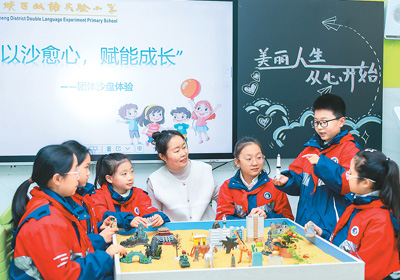 近日,多地中小學開學,迎來春季新學期。圖為山東省棗莊市薛城區(qū)雙語實驗小學老師為學生進行心理健康輔導。王龍飛攝(新華社發(fā))