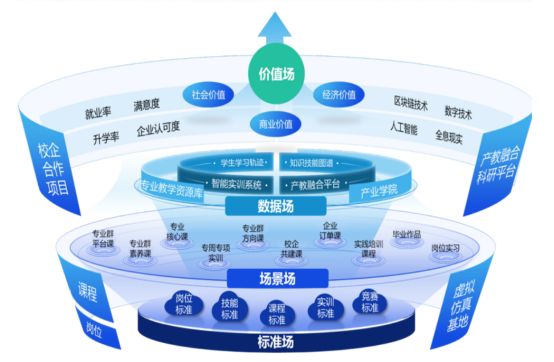 學院商數專業(yè)群將“共生”理念融入職教實踐,提出“四象場域共生”育人模型,構建“標準場—場景場—數據場—價值場”四維聯動機制: