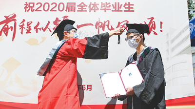 接過(guò)學(xué)位證書(shū),本科畢業(yè)生蔡杰和院長(zhǎng)拍了一張合影。他說(shuō):“沒(méi)有遺憾了,這個(gè)畢業(yè)典禮特殊而完美!”