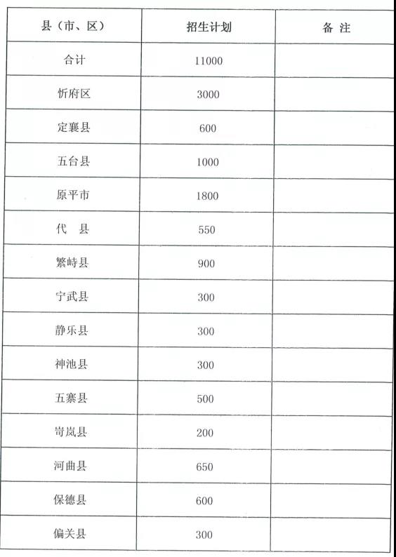 3.忻州市2020年職業(yè)高中分縣招生計劃