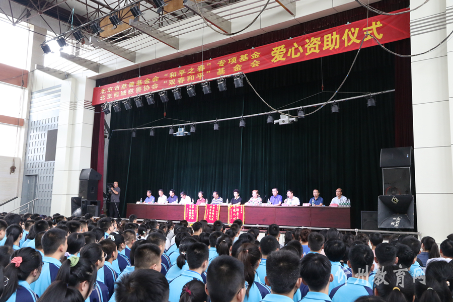 8月23日,北京市慈善基金會(huì)“和平之春”專(zhuān)項(xiàng)基金、北京西城慈善協(xié)會(huì)“雙春和平”基金資助儀式在忻州十中舉行。北京市慈善基金會(huì)“和平之春”專(zhuān)項(xiàng)基金創(chuàng)立者、出資人,北京西城慈善協(xié)會(huì)“雙春和平基金”創(chuàng)始人、出資者徐雙春、殷和平夫婦,原北京西城慈善協(xié)會(huì)副會(huì)長(zhǎng)、愛(ài)心大使陳華,原忻州市市委常委、市政府常務(wù)副市長(zhǎng)王學(xué)英,忻州市教育局黨組書(shū)記、局長(zhǎng)劉新明,中共忻州市教育系統(tǒng)工委副書(shū)記高光洲,忻州市教育局辦公室主任湯永斌及忻州十中校領(lǐng)導(dǎo)出席了資助儀式。