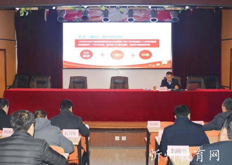 11月28日,原平市教科系統(tǒng)召開黨的十九屆五中全會(huì)精神宣講報(bào)告會(huì),市委宣講團(tuán)成員、市教科局黨組書記、局長(zhǎng)申國(guó)華作宣講報(bào)告。市教科局主任科員、機(jī)關(guān)支部書記賈毅主持報(bào)告會(huì)。教科系統(tǒng)各學(xué)校校長(zhǎng)、書記,局機(jī)關(guān)各科室負(fù)責(zé)人參加報(bào)告會(huì)。