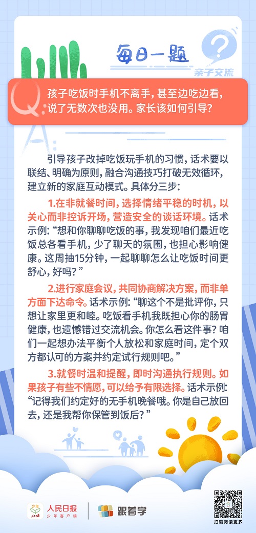 每日一題丨孩子吃飯玩手機屢教不改,該如何引導?