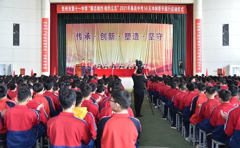 又是一年五月,陽(yáng)光明媚,又逢“五四”,血脈僨張。在五月的花海中擁抱青春的時(shí)代,在初升的太陽(yáng)下點(diǎn)燃生命的未來(lái)。為進(jìn)一步激發(fā)初三師生堅(jiān)定目標(biāo)、奮力拼搏、沖刺中考的雄心壯志,5月4日上午,忻州市第十一中學(xué)初三年級(jí)全體師生在學(xué)校文體藝苑舉行了“勵(lì)志相約、相約立志”2021屆備戰(zhàn)中考50天沖刺牽手踐行啟動(dòng)儀式,校長(zhǎng)張?jiān)崎L(zhǎng)、黨支部書(shū)記趙智剛、學(xué)校領(lǐng)導(dǎo)、部分家長(zhǎng)代表共同見(jiàn)證了這一振奮人心的時(shí)刻。
