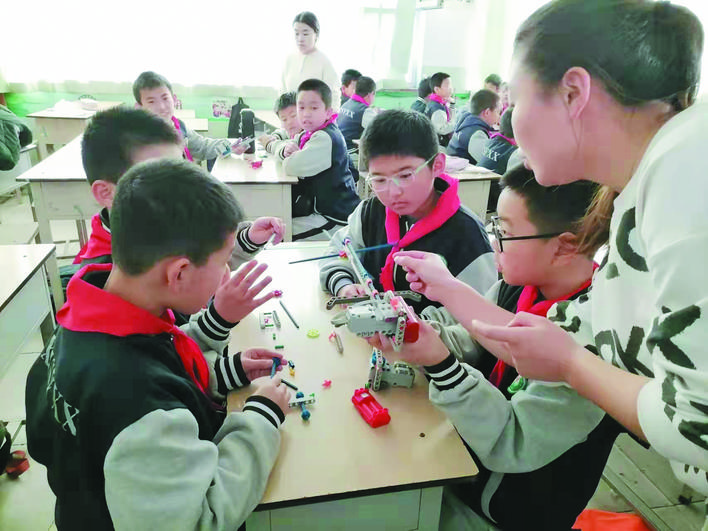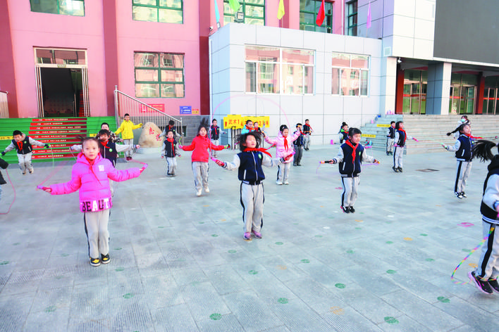 冬日暖陽下,忻州市實(shí)驗(yàn)小學(xué)校園里一派生機(jī)勃勃的景象。武術(shù)訓(xùn)練場上,孩子們正在認(rèn)真扎馬步、練拳術(shù),一招一式打得虎虎生威,眼睛里閃爍著堅(jiān)毅和自信的光芒。百人腰鼓隊(duì)排著整齊的隊(duì)伍,伴著音樂的節(jié)奏不停變換著步伐,鼓槌上的紅綢子上下舞動,看得人眼花繚亂?;ㄊ交@球挑戰(zhàn)籃球極限,展示籃球技術(shù)和表演的完美結(jié)合?;犹K中,孩子們在環(huán)擺的繩索中做著各種跳躍動作……操場上,熱火朝天,教學(xué)樓里,每一間教室里都散發(fā)著濃濃的趣味性?!耙黄惨晦?,書寫堂堂正正中國字”“編程要注意邏輯關(guān)系”“三原色是哪些顏色呢?”……這是市實(shí)驗(yàn)小學(xué)每周三開展的第二課堂綜合實(shí)踐活動,也是孩子們最興奮最高興的校園時(shí)光。