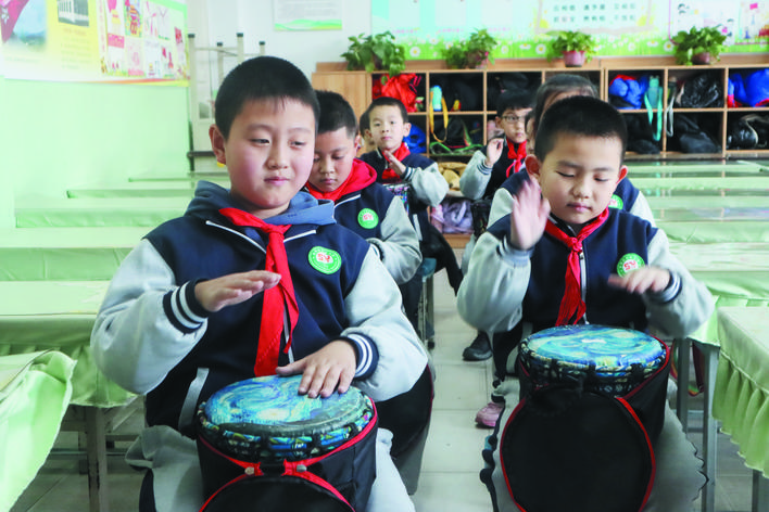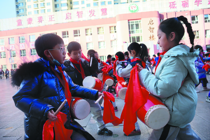 作為一種歷史悠久的傳統(tǒng)民族藝術(shù),腰鼓節(jié)奏歡快,鼓聲清脆悅耳。由孩子們展示這種藝術(shù)形式,更能張揚(yáng)出獨(dú)特的藝術(shù)性,同時(shí)練招式、講秩序,長知識、練思辨。由來自全校的100名學(xué)生組成的腰鼓隊(duì)是市實(shí)驗(yàn)小學(xué)精心打造的一支規(guī)模相對較大的隊(duì)伍。董海燕老師是腰鼓隊(duì)的三位帶隊(duì)老師之一,還兼任198班的班主任,緊張的課堂教學(xué)之余,還要積極參與到教孩子們打腰鼓的第二課堂活動中,董老師說,下一步,學(xué)校準(zhǔn)備打造千人腰鼓隊(duì),讓更多的孩子了解和掌握打腰鼓的技巧、技法,更好地弘揚(yáng)中華民族的傳統(tǒng)藝術(shù)。