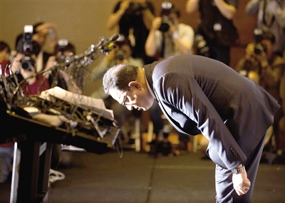5月2日,在韓國首爾,利潔時韓國子公司負責人阿塔爾·薩夫達爾在記者會上鞠躬道歉。 英國日用品公司利潔時韓國子公司2日在首爾召開記者會,就“加濕器殺菌劑致死事件”向韓國國民道歉并提出賠償方案。2011年韓國有多人因罹患不明原因的肺病而死亡,一度在韓國社會引發(fā)恐慌。韓國保健福祉部疾病管理本部經(jīng)調(diào)查后認定,加濕器殺菌劑是導(dǎo)致不明肺病的元兇。 新華社/美聯(lián)