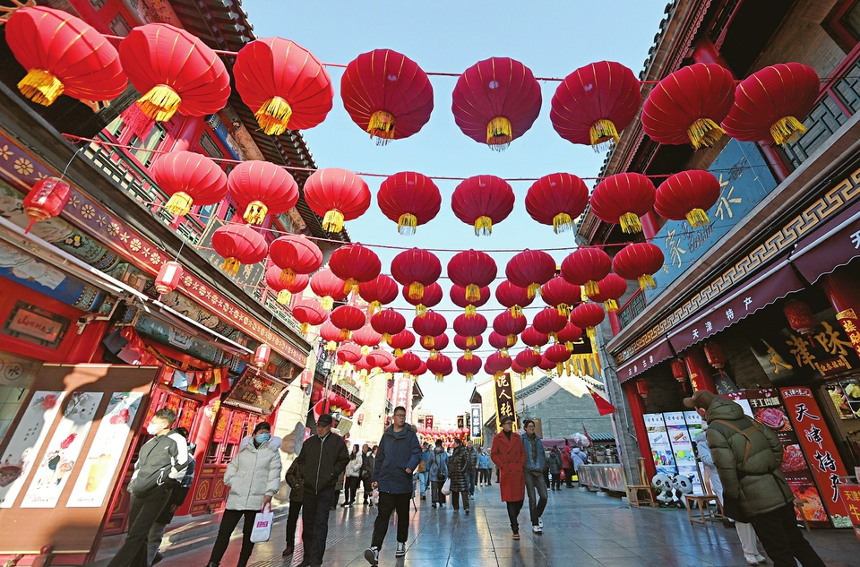 2月10日,游客在天津古文化街游覽。新華社發(fā)
