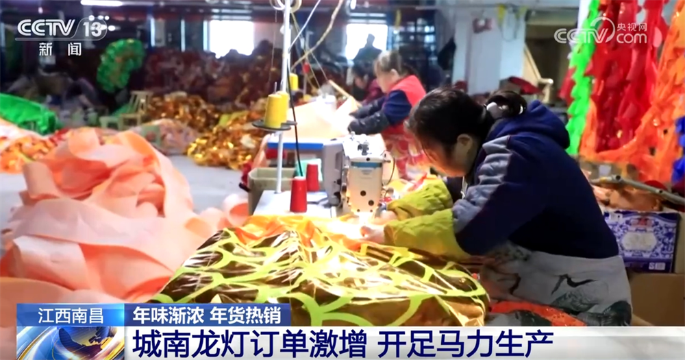 江西南昌的城南龍燈有著700多年的制作歷史。春節(jié)前,當(dāng)?shù)爻悄淆垷羯a(chǎn)基地訂單激增。數(shù)百平方米的廠房內(nèi),設(shè)置了龍頭、龍身、龍衣、龍尾等制作區(qū),50多名工人都在有條不紊地完成自己的工序。在發(fā)貨區(qū),師傅們忙著裝貨打包,趕在年前給來自全國和海外的訂單發(fā)貨。
