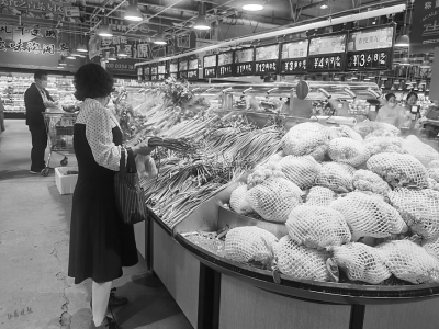 “菜品雖然很多,卻很難見(jiàn)到‘1元菜’?!?月16日一早,家住東太堡的王麗麗來(lái)到位于長(zhǎng)風(fēng)街的某超市,在蔬菜柜臺(tái)前感嘆,好幾天沒(méi)有便宜菜了。