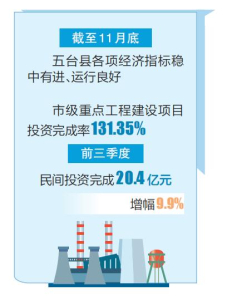 本報訊12月23日,記者從忻州市政府新聞辦公室獲悉,今年以來五臺縣圍繞新材料、新能源和文旅康養(yǎng)產(chǎn)業(yè),因地制宜發(fā)展新質(zhì)生產(chǎn)力,持續(xù)擴(kuò)大有效投資。截至11月底,該縣各項經(jīng)濟(jì)指標(biāo)穩(wěn)中有進(jìn)、運(yùn)行良好,市級重點工程建設(shè)項目投資完成率131.35%,前三季度民間投資完成20.4億元,增幅9.9%。