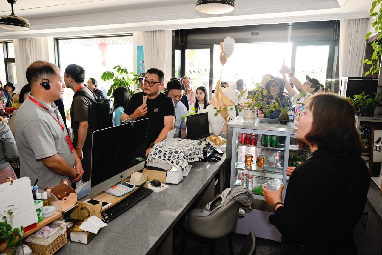 村里蕓溪民宿的“潮趣”營(yíng)地,讓記者們見(jiàn)識(shí)到了“潮鄉(xiāng)”傳統(tǒng)之外時(shí)尚、新銳一面。民宿主理人是80后返鄉(xiāng)青年宋曉燕,在“家門(mén)口”實(shí)現(xiàn)了開(kāi)民宿的夢(mèng)想?!笆|溪”背靠浙北最美公路翁金線(xiàn)、面朝錢(qián)塘江,如今,有了這“潮趣”營(yíng)地,就能讓客人們想安靜時(shí)要一間房、泡一壺茶;愛(ài)熱鬧的,呼朋喚友一起燒烤、露營(yíng),共赴“江岸野趣”;或是帶著小朋友來(lái)摘野菜、喂小動(dòng)物,與大自然來(lái)一次親密接觸……宋曉燕將“蕓溪”經(jīng)營(yíng)成了具有鄉(xiāng)村煙火氣、人情味的驛站,讓南來(lái)北往的客人們?cè)谶@里找到了“回家”的感覺(jué)。已是“銀宿”級(jí)別的“蕓溪”,因?yàn)闃O好的口碑,目前客房訂單已排到“五一”假期。