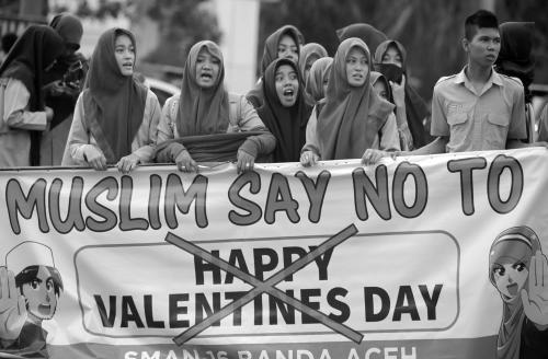 然而,在世界上一些觀念相對保守的國家或地區(qū),情人節(jié)仍然受到不同程度的抵制。據(jù)英國《每日郵報》13日報道,在印尼亞齊省一些地區(qū),慶祝情人節(jié)仍被視為“不法行為”,并被政府當(dāng)局嚴(yán)令禁止。該省首府城市班達(dá)亞齊禁止市民互相贈送賀卡或巧克力。該市市長伊里查說:“我們的社區(qū)和穆斯林年輕人不應(yīng)慶祝非伊斯蘭教的節(jié)日……政府當(dāng)局有義務(wù)預(yù)防公眾和年輕一代人從事不法行為?!睋?jù)稱,當(dāng)?shù)貓?zhí)法人員將在情人節(jié)前后加緊巡邏,嚴(yán)查送花或贈送禮物等行為。