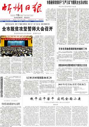 1月18日,全市脫貧攻堅(jiān)誓師大會(huì)召開(kāi),標(biāo)志著我市的脫貧攻堅(jiān)戰(zhàn)正式打響。一年來(lái),全市上下深入貫徹落實(shí)中央扶貧開(kāi)發(fā)工作會(huì)議特別是習(xí)近平總書(shū)記關(guān)于堅(jiān)決打贏脫貧攻堅(jiān)戰(zhàn)的重要講話精神,堅(jiān)持以脫貧攻堅(jiān)統(tǒng)攬經(jīng)濟(jì)社會(huì)發(fā)展全局,全面落實(shí)“3659”脫貧攻堅(jiān)策略和“4433”實(shí)施辦法,全年完成貧困村出列589個(gè),貧困人口脫貧8.73萬(wàn)人,106個(gè)戶(hù)籍人口50人以下貧困行政村整村搬遷有序推進(jìn)。(2016年1月19日《忻州日?qǐng)?bào)》)