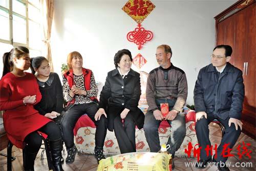 在東冶鎮(zhèn)永安村徐計(jì)文家,胡蘇平詳細(xì)了解家庭生產(chǎn)生活情況,詢問(wèn)徐妻的病情,得知3個(gè)孩子都在上學(xué)、家中因病因?qū)W致貧后指出,扶貧必扶智,把孩子培養(yǎng)出來(lái)是根本的扶貧之策。她鼓勵(lì)徐計(jì)文夫婦樹立信心,咬緊牙關(guān),挺過(guò)暫時(shí)困難,用心把孩子們培養(yǎng)成人,并祝愿徐計(jì)文一家新的一年有大的轉(zhuǎn)變。村民徐喜堂在10多年前因事故腰椎受傷,不能從事重體力勞動(dòng),胡蘇平了解到他正在經(jīng)營(yíng)大棚,但設(shè)施落后、產(chǎn)出效益不好時(shí),隨即指示省人大駐村第一書記幫助設(shè)計(jì)改造大棚設(shè)施,適度擴(kuò)大種植規(guī)模,完善功能,增加種植品種,提高家庭收入,盡快脫貧致富。調(diào)研期間,胡蘇平囑咐貧困群眾,各級(jí)黨委和政府一定會(huì)按照中央和省委的部署,想方設(shè)法幫助他們解決具體困難,幫他們?cè)缛彰撠毐夹】?。同日,省人大常委?huì)13名專委主任分赴東治鎮(zhèn)和陽(yáng)白鄉(xiāng)的8個(gè)包扶村貧困群眾家中進(jìn)行調(diào)研、慰問(wèn)。