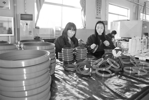 圖為1月21日,原平市泰寶密封有限公司的工人們正在生產加工密封件。該企業(yè)擁有國際先進水平的奧地利無模密封件生產線,年生產能力達1200萬件。產品行銷東南亞各國和全國二十多個省市,廣泛應用于煤炭、石油、冶金、機械、化工、電力、交通運輸?shù)刃袠I(yè)。(褚震 攝)