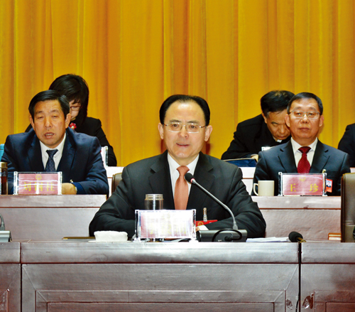 市委書記李俊明在市四屆人大三次會(huì)議閉幕大會(huì)上作重要講話。范濤 攝