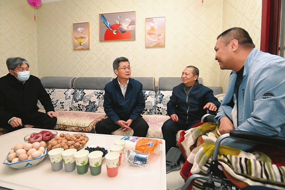 易地搬遷不僅讓群眾挪了窮窩、住上新房,更讓大家的精神面貌煥然一新。郝生偉、郝華君父子二人有不同程度殘疾,面對(duì)生活依然樂(lè)觀向上。藍(lán)佛安入戶了解他們的身體、生活狀況和享受救助政策情況。父子倆看到省委書(shū)記來(lái)了,你一言我一語(yǔ)表達(dá)著對(duì)黨和政府的感激之情。聽(tīng)到郝華君希望開(kāi)一間網(wǎng)店,力所能及地回報(bào)社會(huì)時(shí),藍(lán)佛安高興地點(diǎn)贊。他動(dòng)情地說(shuō),共產(chǎn)黨就是給人民辦事的,黨和政府始終是人民群眾的堅(jiān)強(qiáng)依靠。大家在脫貧攻堅(jiān)的路上沒(méi)有掉隊(duì),在奔向現(xiàn)代化和共同富裕的路上,黨和政府也一定不會(huì)讓大家掉隊(duì)!藍(lán)佛安指出,社區(qū)黨員干部要厚植為民情懷,多關(guān)心弱勢(shì)群體,拿出更多針對(duì)性幫扶舉措,解決好群眾的急難愁盼問(wèn)題,讓大家生活有靠、日子有盼、發(fā)展有機(jī)會(huì)。他強(qiáng)調(diào),要進(jìn)一步完善黨建引領(lǐng)社區(qū)治理機(jī)制,建強(qiáng)服務(wù)陣地,更好地把政治優(yōu)勢(shì)、組織優(yōu)勢(shì)轉(zhuǎn)化為治理效能,以社區(qū)“微治理”撬動(dòng)民生“大幸?!薄?/p>
