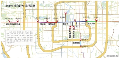 下周一(4月11日)起,長(zhǎng)安街及其延長(zhǎng)線等10條道路,將禁止電動(dòng)自行車通行。硬闖上路的將被處以20元罰款,拒絕接受處罰的一律扣車。