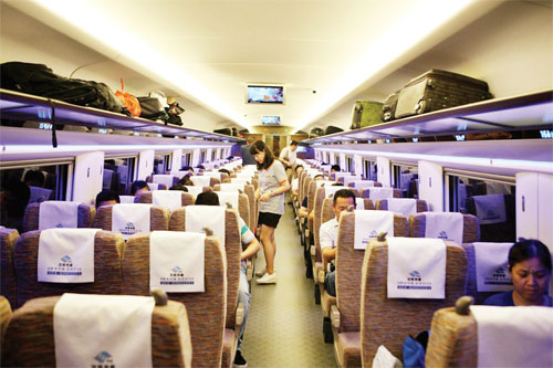 8月15日,旅客在大連北站乘坐中國標準動車組。