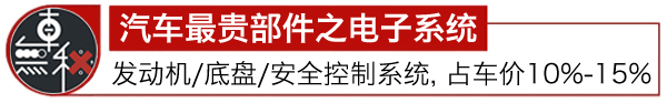 這個與汽車的檔次有關(guān),小型車電子系統(tǒng)較為簡單,價格也更低些,占整輛車價格的10%左右,而豪華車型的電子系統(tǒng)先進而又復(fù)雜,平均占據(jù)整輛車15%的價格。
